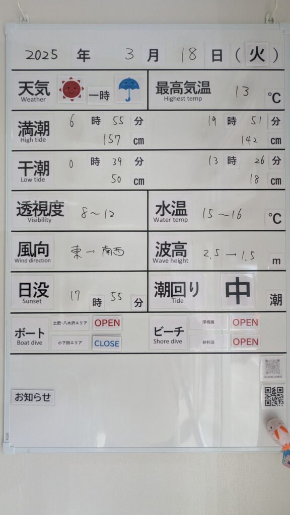 2025年3月18日 / 最終更新日 : 2025年3月18日 toids2021 海況情報 ビーチ&ボートともに【OPEN】です。 風が止み、穏やかな海況となりました。 小下田エリアはまだうねりが大きく残るため、ボートは八木沢エリアのみのOPENといたします。 FacebookXCopy