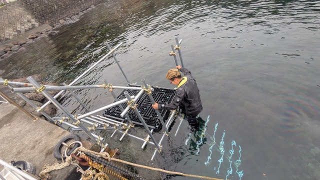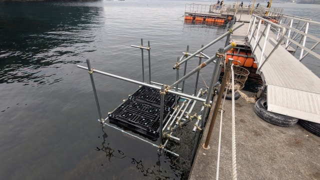 荒天時やその前後で釣り堀&浮桟橋が外されて使用不可となる間も、この単管ステージは残りますので使用が可能です。