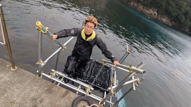 エキジットは端のラダーから、フィンを履いたままでも上がれる構造のラダーです。