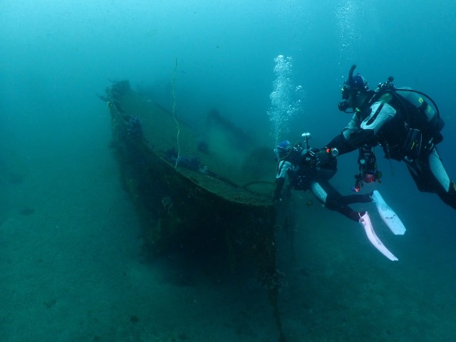 でっかい沈船 水天丸も端から端までは見渡せませんが、これはこれで趣きあって良し。