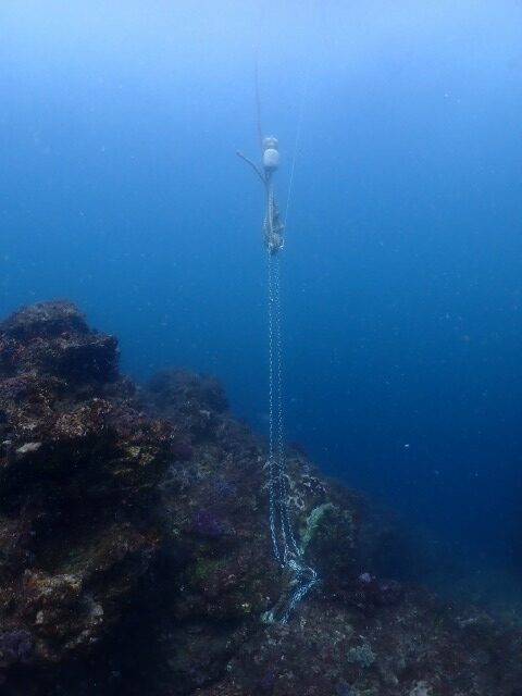 これでどんな潮が来ても岩肌に触れるのはチェーン部分ですので、そう簡単に切られることもないでしょう。