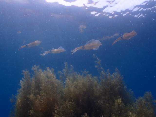 浅場は非常に透き通っていて見通しが良く、産卵に来ていたアオリイカが良く見えました。