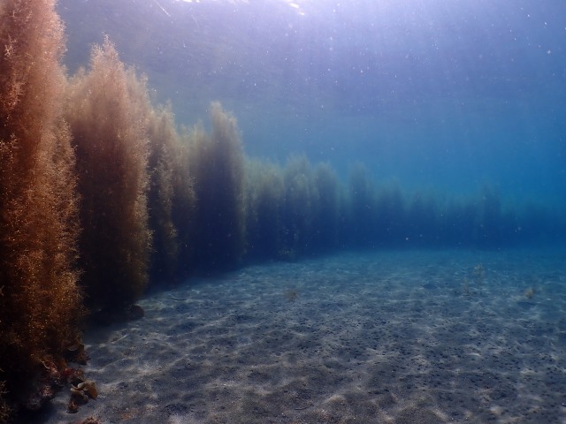 浅場は透視度が非常に高く透き通っているのに対し、深場ほど薄暗く濁りがありました。