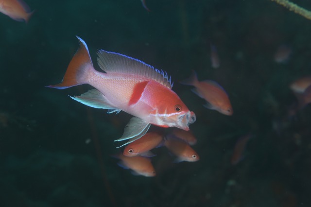 ビーチ内の沈船や私だけが知る”隠し沈船”のあたりにはアカオビハナダイが増えてきました。