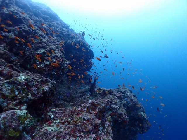時折小さなイサキの群れがサーっと降りてきて、またどこかに消えてきます。