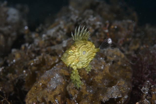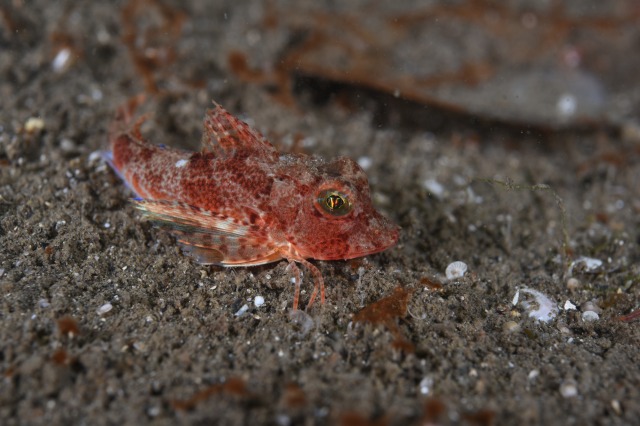 深場でたまたま目が合ったトゲカナガシラの幼魚。