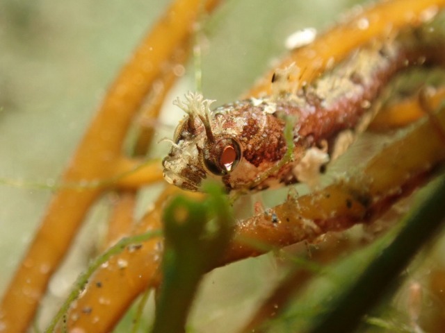 ホンダワラの中に隠れていたコケギンポ。
