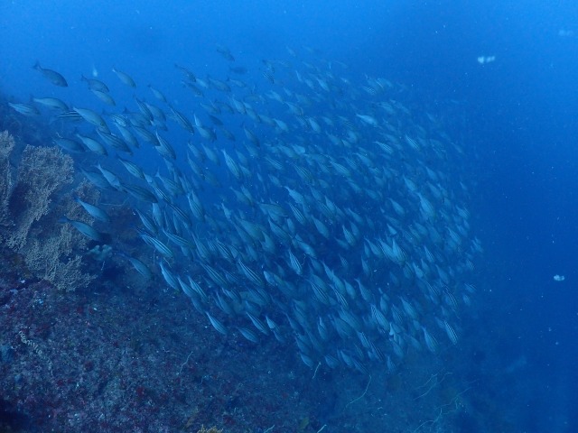 ブイの北側、西の根へ飛ぶ大きな谷ではイサキの群れがドカドカ流れていく様子が見えました。