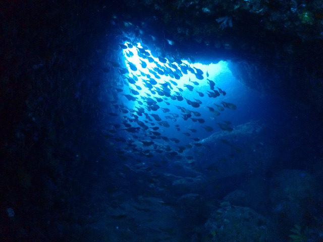 南の大空間では1匹の大きなミノカサゴが美しいシルエットを披露してくれました。