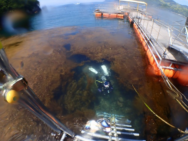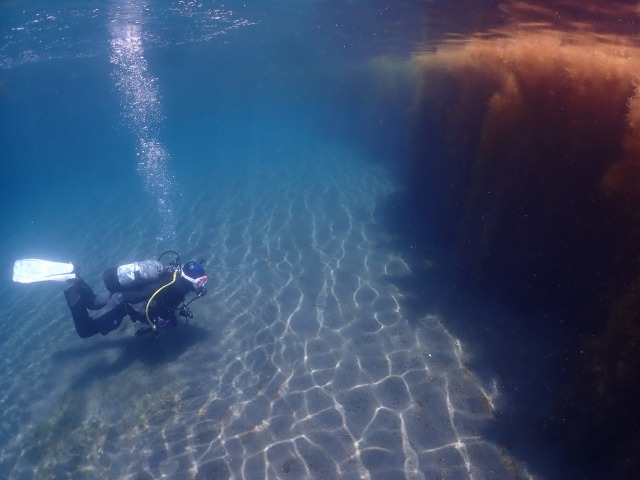 作業直後砂が舞って濁っているため、水中の景色はまた今度。