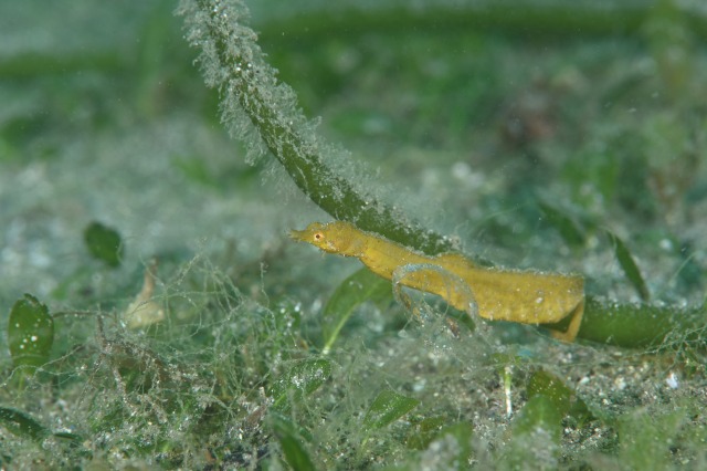 -10m前後のウミヒルモが広がる中に、今年はやたらたくさん黄色いタツノイトコが見つかります。