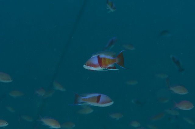 沈船付近のアカオビハナダイ達はさらに数が増え、