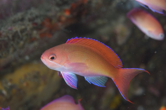 鰭を閉じてアカオビやケラマのメスに混ざるとどこに行ったか分からなくなります。