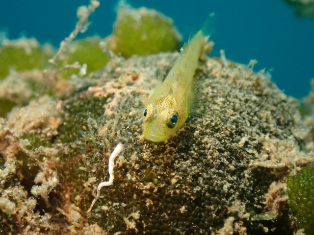 沖の境界ロープの上でウミショウブハゼ属の一種と出会いました。
