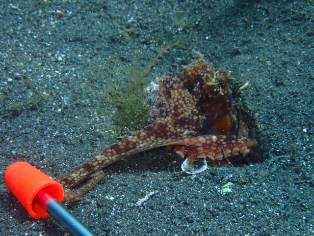 近くに置いたものが気に入らないと、足(手?)を使って遠くに離します。