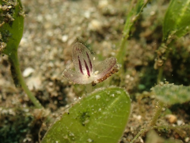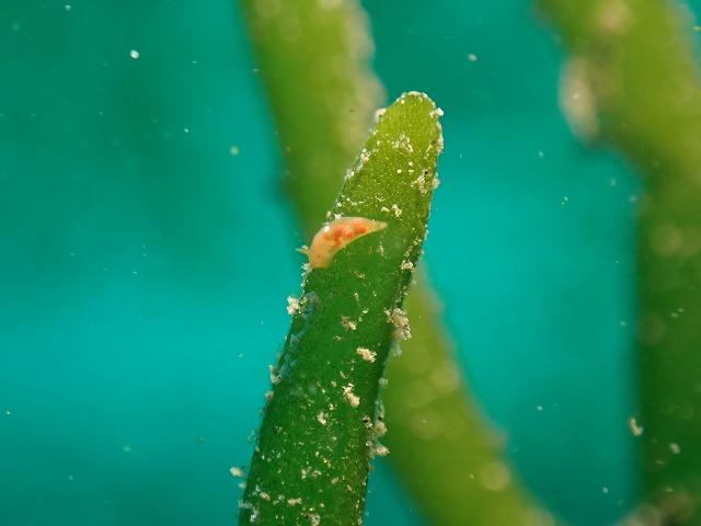 沈船へ続くロープ付近のミルに極小のオカダウミウシを発見。