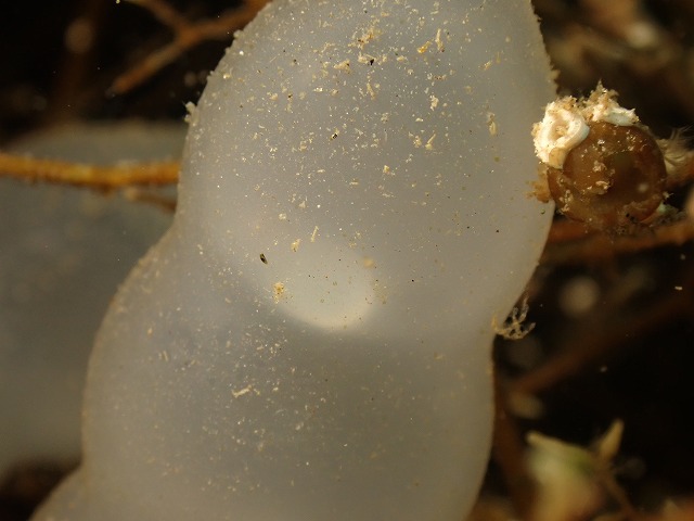 浅場の大岩に産み付けている新しめのアオリイカの卵。