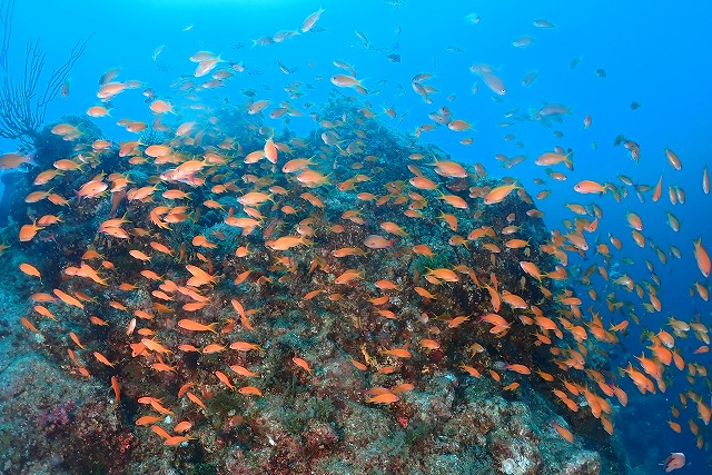 透視度は8~12mほどで、なんだか全体的に浮遊物が多く緑っぽい感じ。
