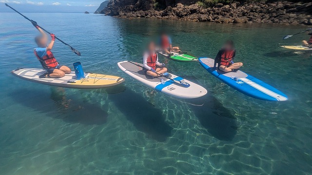 浅場の透明度が良すぎて、SUPが宙を飛んでいるようです。