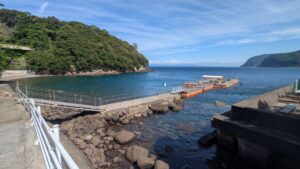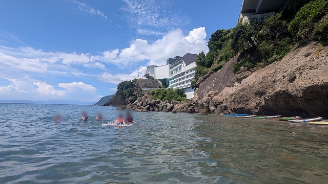 屋形ビーチを出発し、フェリー乗り場を越え、通り崎ビーチを越え、