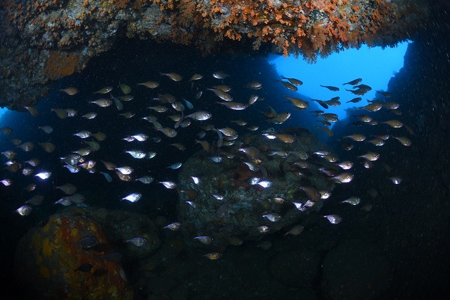 この奥の真っ暗な通路にサクラテンジクダイも数匹確認できました。
