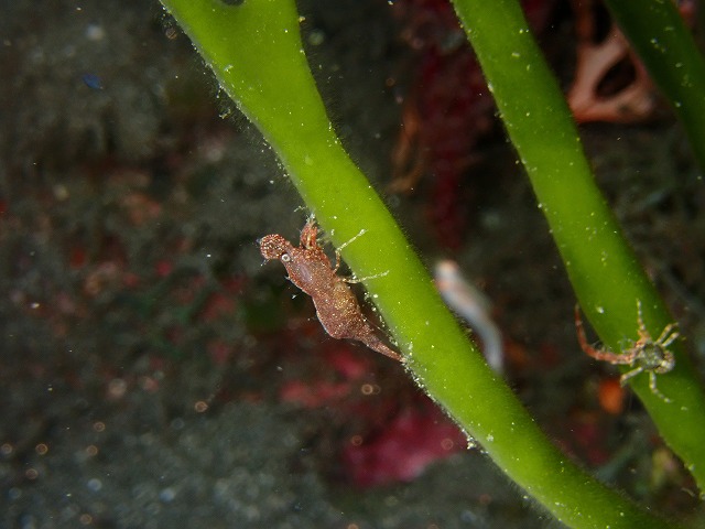 沖の境界付近のミルで見つけた、コブタヒラツノモエビ。