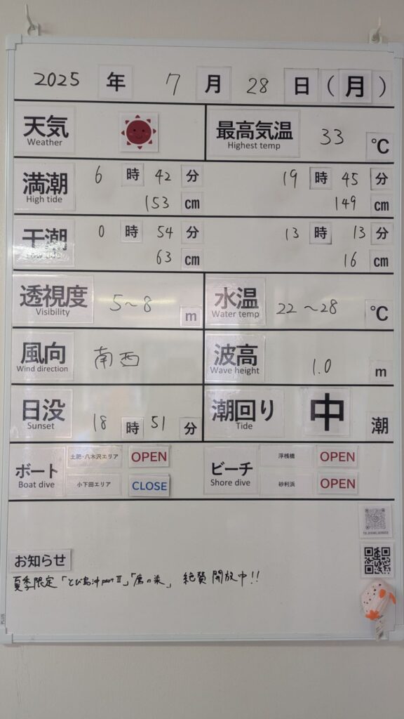 台風の影響で小下田エリアはうねりが大きいため、ボートは八木沢エリアのみのOPENといたします。