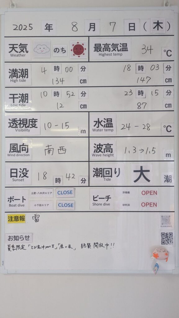 ビーチのみ【OPEN】、ボートは【CLOSE】です。
