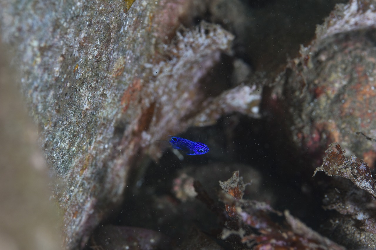 10m岩付近にナガサキスズメダイの幼魚を発見です。