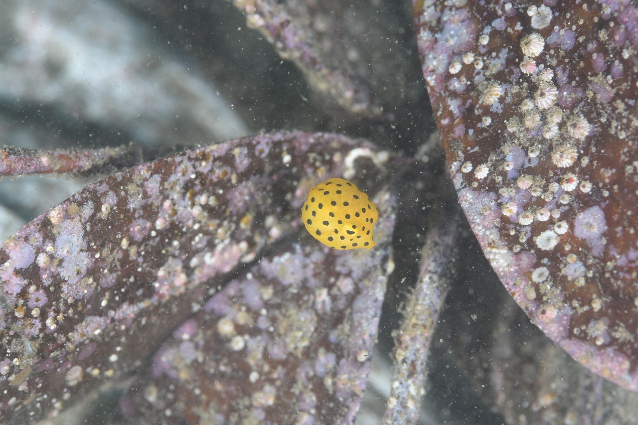 アオリイカの産卵床にはミナミハコフグの幼魚が登場しました。