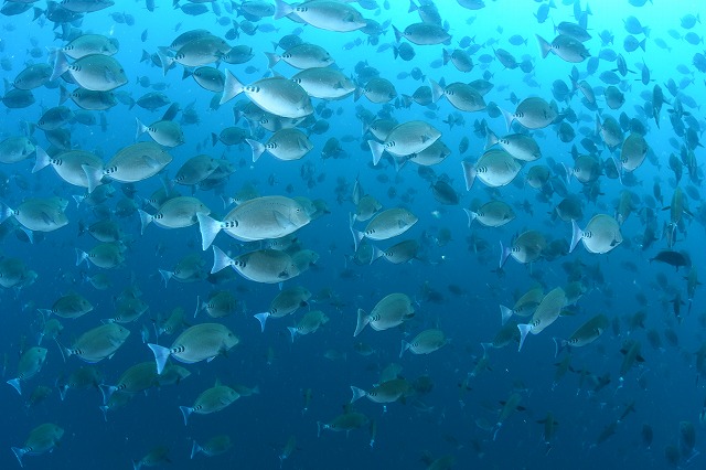 ブイの根からやや南方にかけてニザダイが大集結しています。