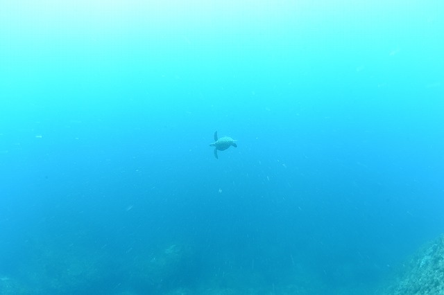 颯爽と泳ぎ去るカメを全力で追いかけながら慌ててシャッター切りましたが、洞窟内部撮影の設定のまま・・・