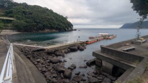 砂利浜へ歩いて行くことができない状況ですが、安全のためご理解のほどお願い申し上げます。