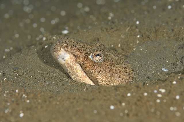 水中が暗いため、瞳孔が開いていていつもの強面が若干緩和されています。