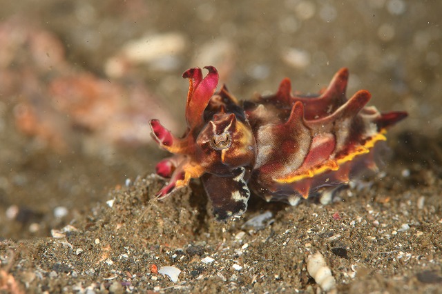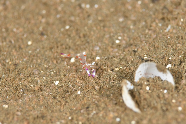 深場の泥地にいたハクセンアカホシカクレエビ。