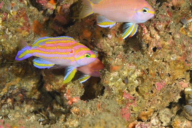 1匹のオスに数匹のメスで構成されたコロニーがそこら中にあり、鰭全開も狙い放題。