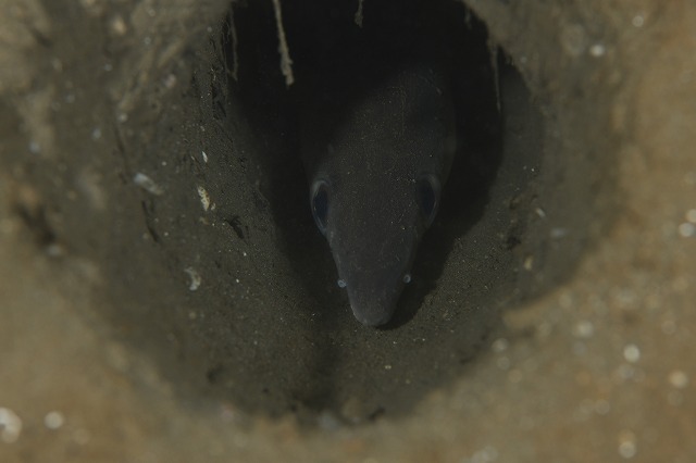 シロアマダイの使わなくなった古い巣穴にハモが入っています。