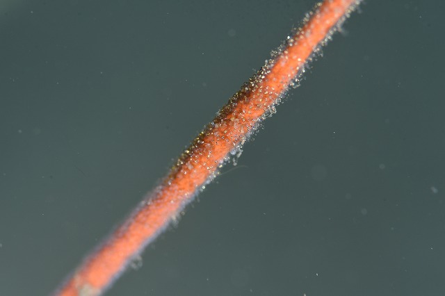 沈船の沖に生えているムチヤギにガラスハゼの卵がついていました。