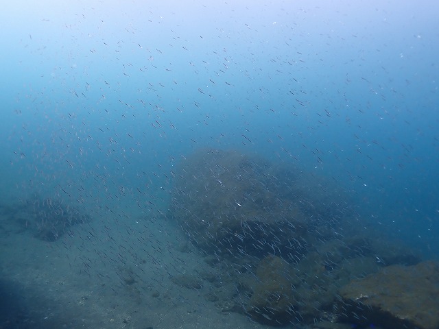 透視度は8~10mほどで浅場は少し白っぽい濁りがあります。