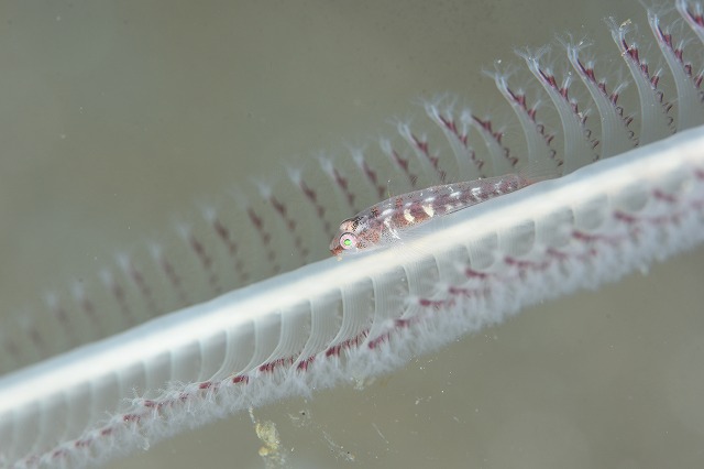 深場のウミエラでセボシウミタケハゼ(?)を発見。