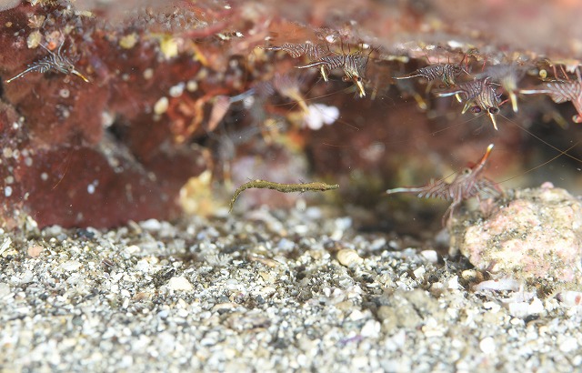 10m岩の下の隙間でベンケイハゼを探していたらタツノイトコの幼魚に出会いました。