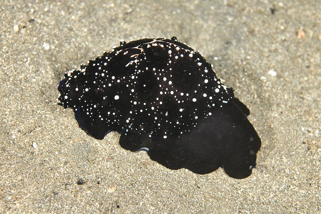 この状態だと真っ黒ですが、実は貝殻はツルッツルの純白。