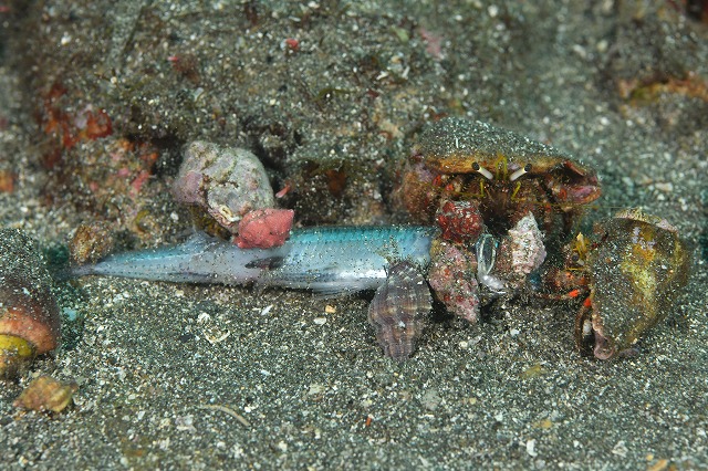 墜落し個体にはヤドカリや貝類が集まってダイニングテーブルと化しています。