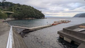 本日は東風が強く海は穏やかですが、沖の方は風波が立っていました。