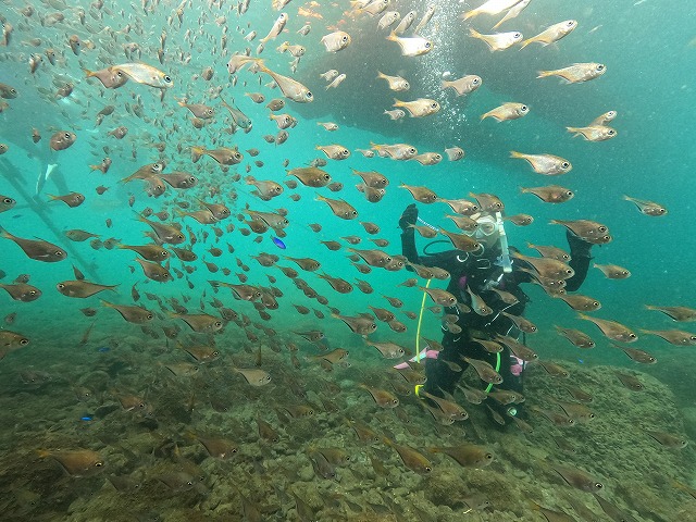 透視度は8~12mほどで、昨日までの西風の影響か若干緑っぽさが増していますが、