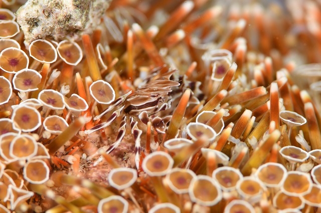 浅場、安全停止に丁度いいところにいるラッパウニを何個か転がすと出会えます。