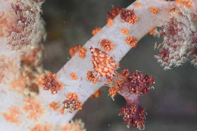 そのまま少し足を伸ばして沈船近くまで行くと途中のトサカにコダマウサギを発見。