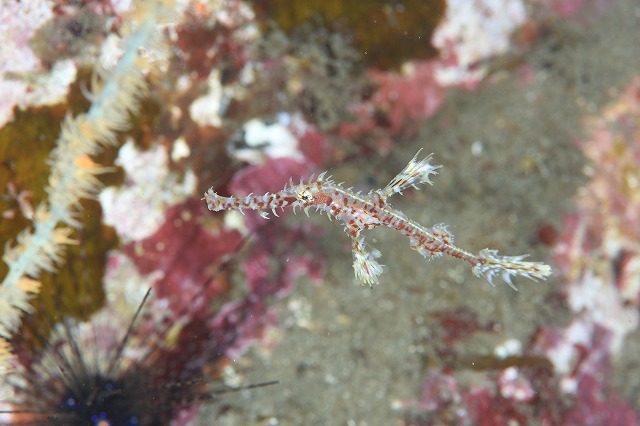 サイズは小さめですが、しっかりムチカラマツに寄り添って擬態していました。