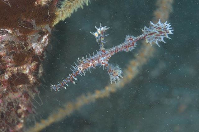 壁沿いのムチカラマツを探すとふわっと現れてこちらの様子を伺っています。