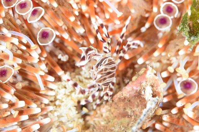 今日もキレイな一直線でラッパウニの触手をチョキチョキしていました。